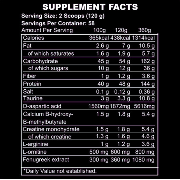 KEVIN LEVRONE ANABOLIC MASS is an exceptional combination of a complex of complete proteins and carbohydrates, supplemented with a number of valuable additives. The supplement has been prepared for people aiming to increase their body mass and develop a muscular physique, especially fans of intensive strength and endurance training. The formula has been enriched with e.g. creatine monohydrate, DAA, HMB, fenugreek extract or taurine, providing multidimensional support in even the most intensive efforts to increase muscle mass and strength. The nutrient, in the form of an easily dissolvable powder, makes it possible to prepare an exceptionally tasty shake,