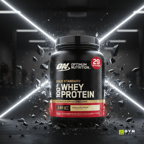 This dietary supplement provides 24 g of protein per serving to support muscle maintenance and recovery. The protein blend consists of whey protein isolate, whey protein concentrate, and whey peptides. Each 2 lb container provides approximately 29 servings of powder mix. The product features a vanilla ice cream flavor, categorized as artificially flavored. This powder is designed to be mixed with water, milk, or a preferred beverage for post-workout consumption. The packaging is a black plastic tub with a secure screw-top lid and a tamper-evident seal. Store in a cool, dry place and follow the serving suggestions located on the back of the label.