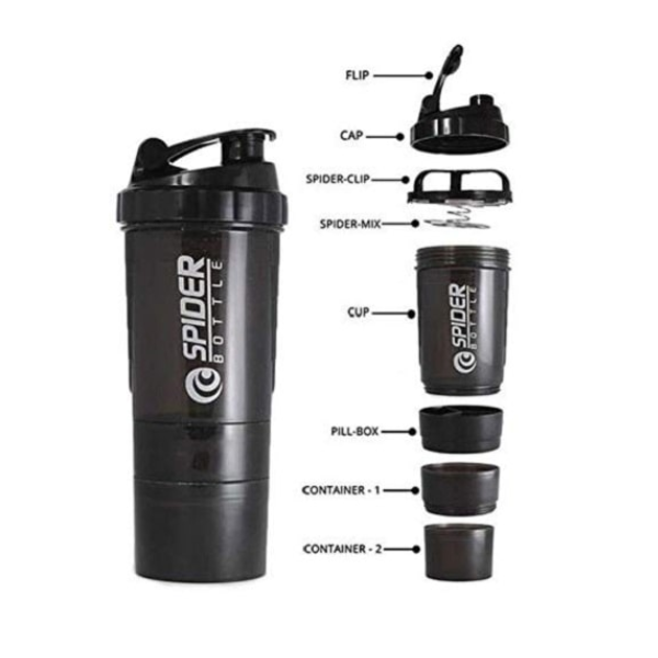 This shaker bottle features a 500ml capacity main compartment, ideal for mixing protein shakes, pre-workouts.